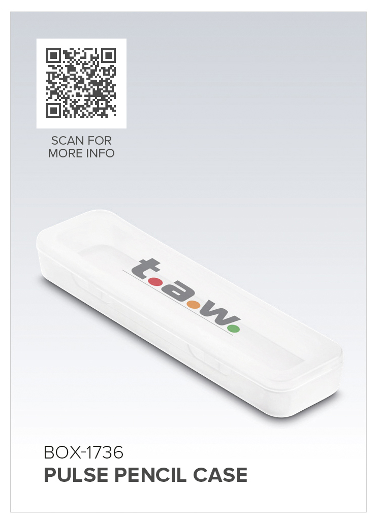 Transparent . Can fit a slim pen, pencil, 15cm ruler , eraser and sharpener. Available only when combined with 2 or more stationery items from this catalogue. Not a stand-alone item.